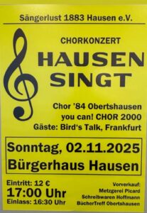 Ein musikalischer Abend mit Bird’s Talk, Bewitched, Randale Vocale, KinderChor Wartburg und der Frankfurter Singgemeinschaft.